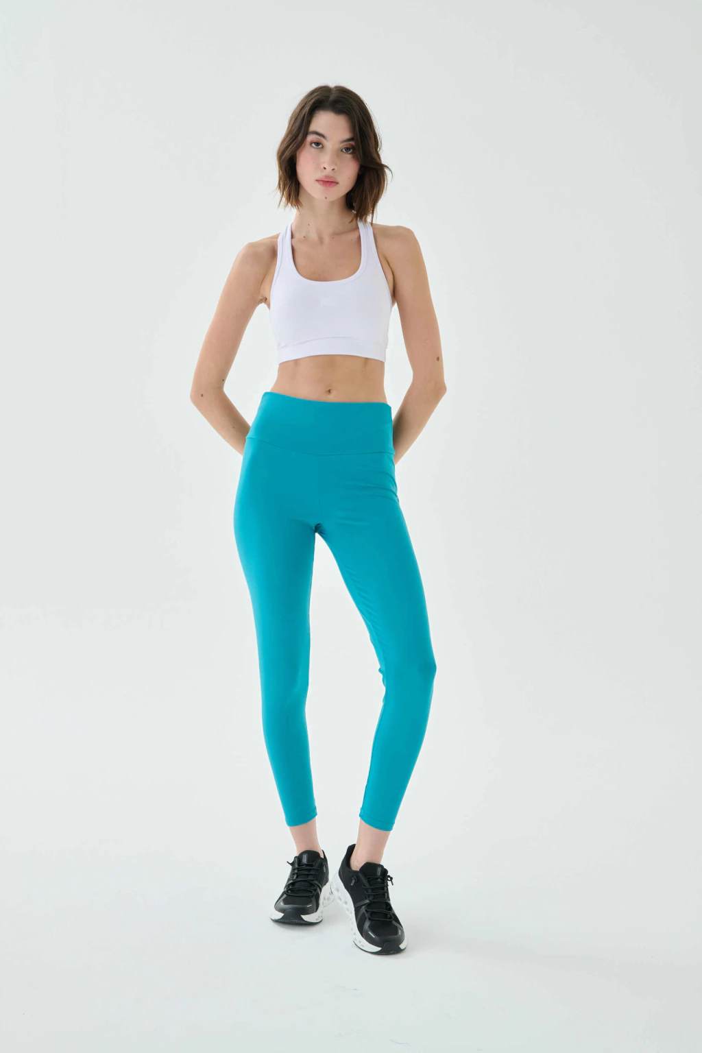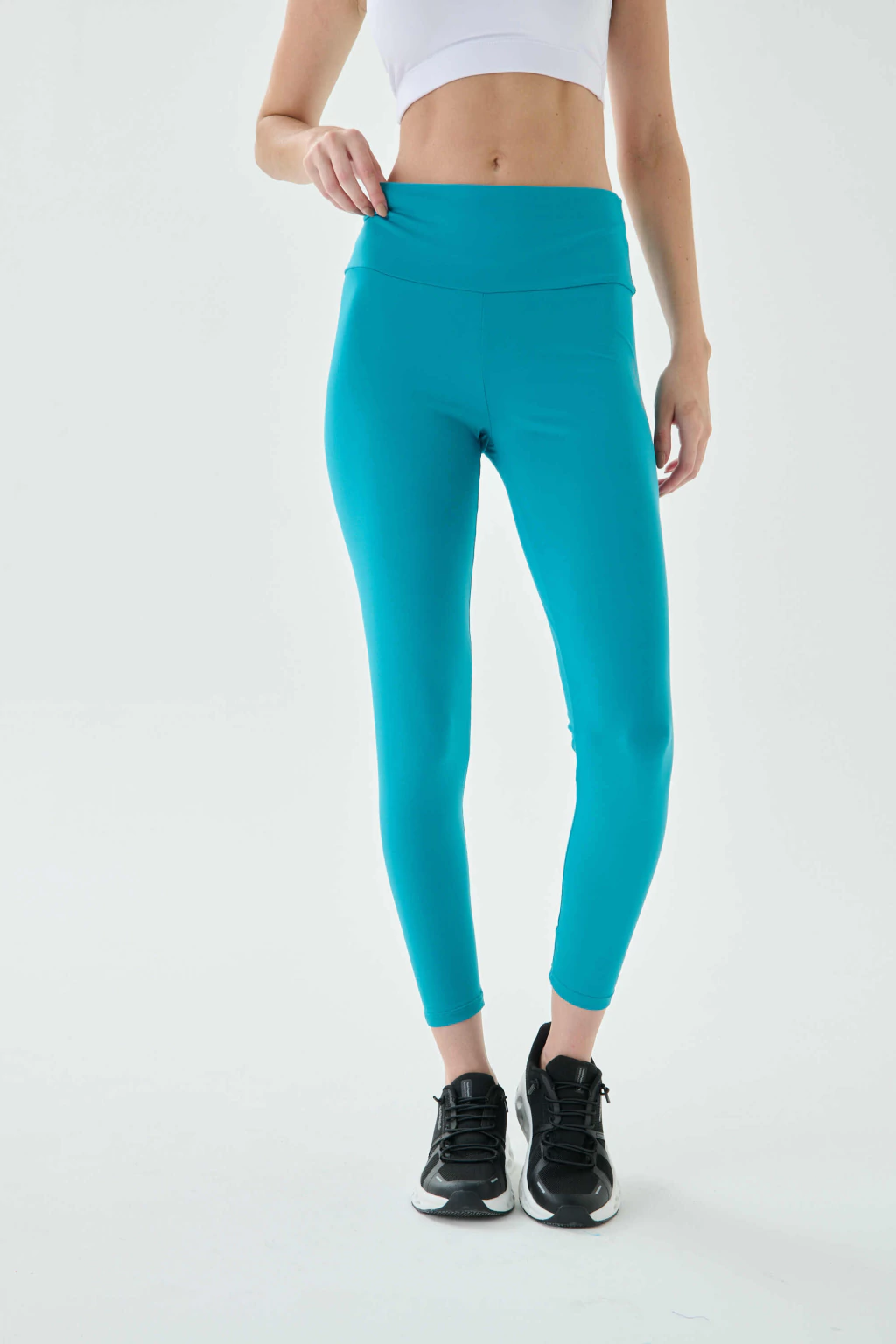 Tiro medio con cintura plana que no se baja, ideal para entrenar, salir a correr o usarla de base todos los días. Disponible en tres tonos versátiles—Plomo, Negro y Petróleo—y en talles S al XXL.