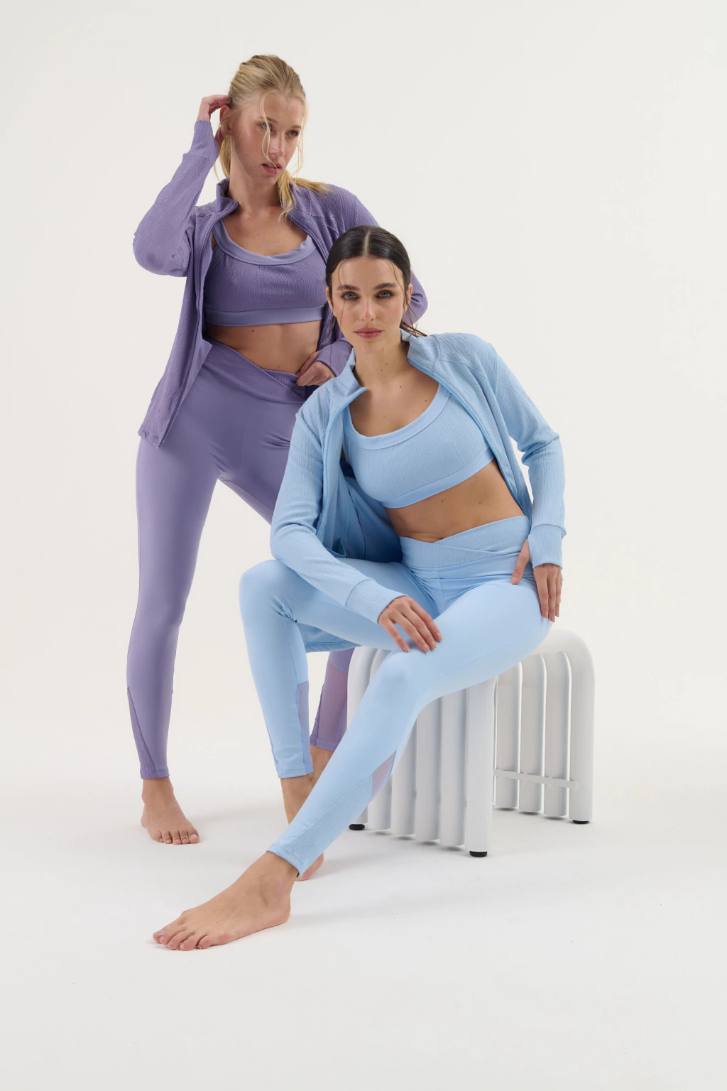 Su confección con dos tipos de tela aporta textura y diseño visual, adaptándose al cuerpo con un calce firme que realza la silueta y brinda libertad total de movimiento.
