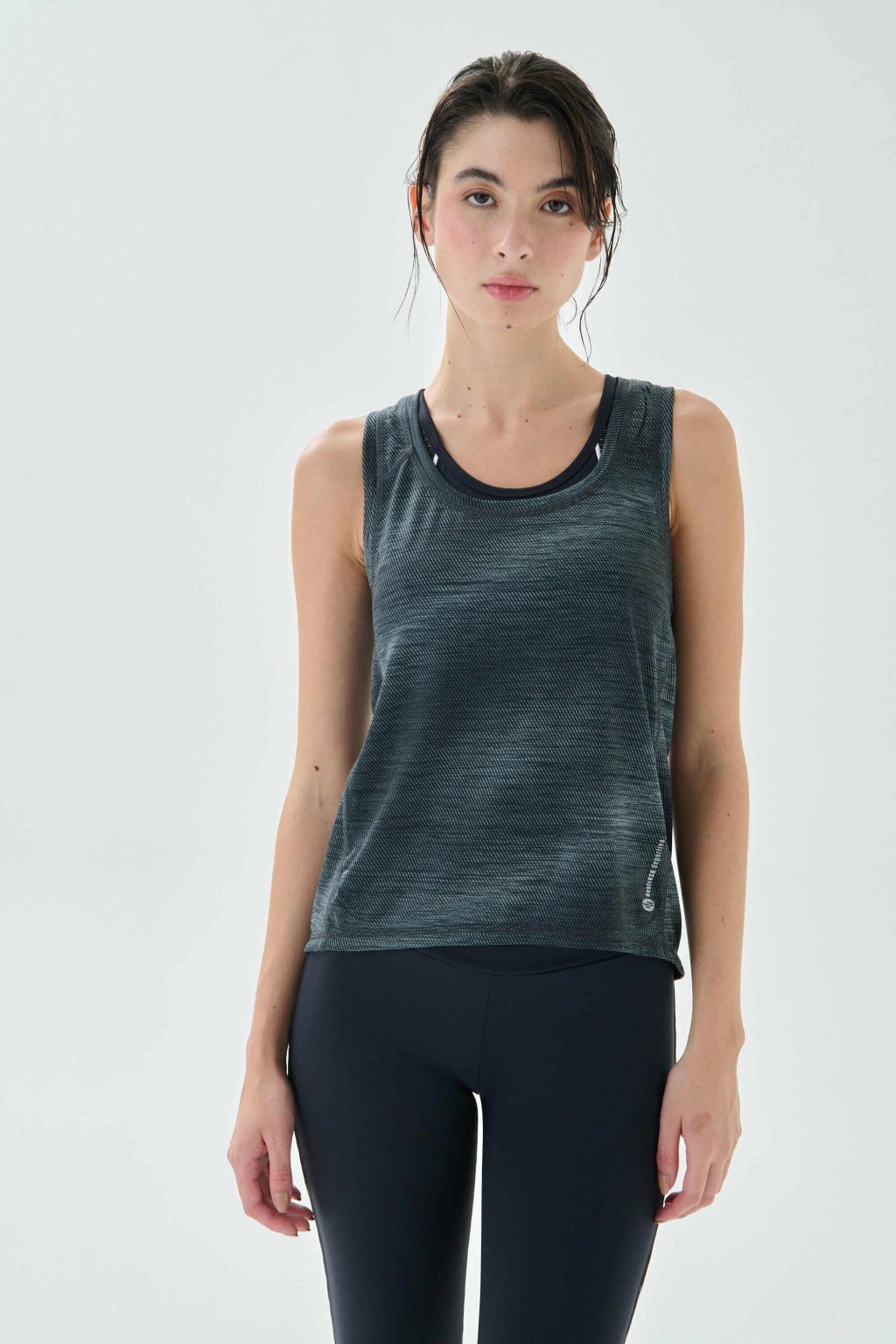 La Musculosa Kristen (Ref. 6480) es tu comodín liviano para entrenar: fabricada con tejido Hit Light de secado rápido y tacto suave, se adapta a cada movimiento con su calce suelto y sisas amplias; el efecto jaspeado le suma onda para que la lleves del gym al día a día.