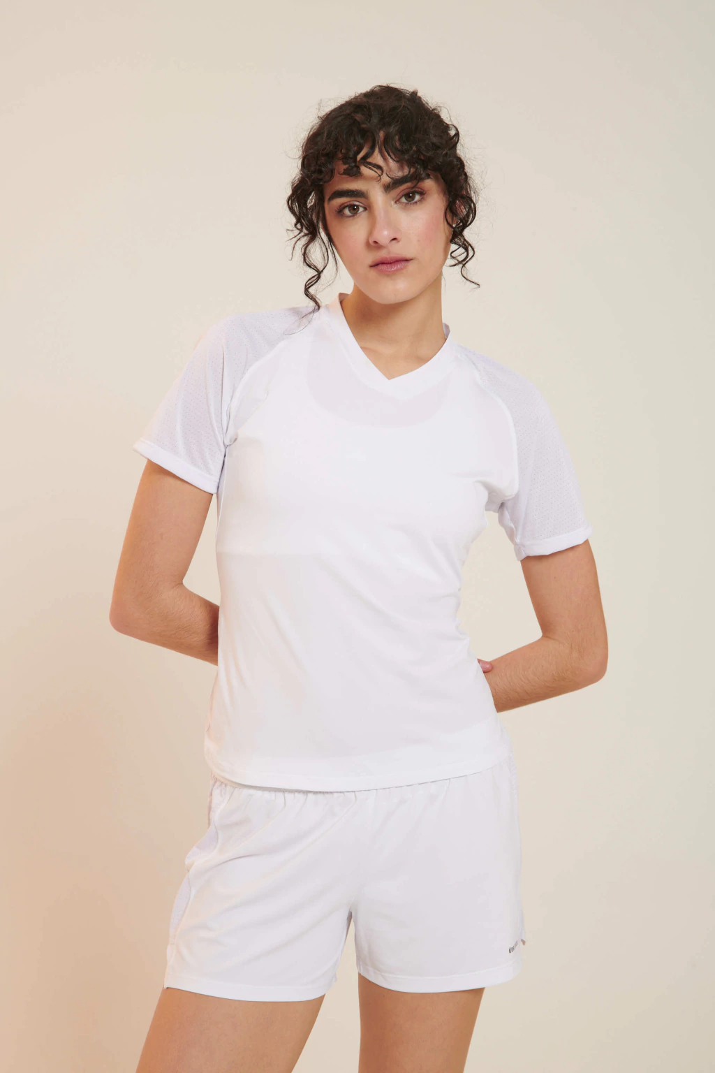 Remera deportiva con escote en V, confeccionada en tela liviana y suave al tacto. Su diseño cómodo y funcional la hace ideal para entrenamientos o para llevar un look sporty todos los días.